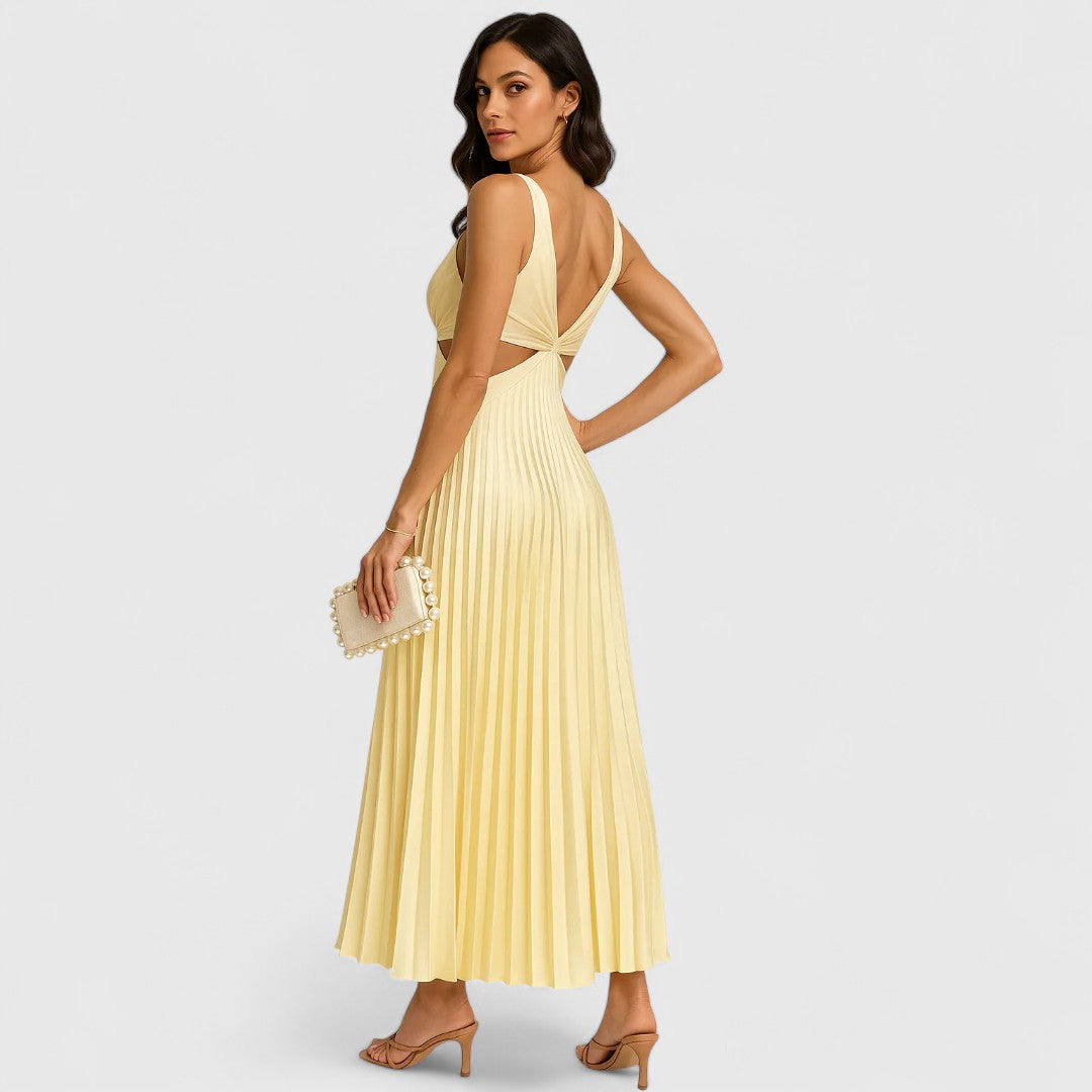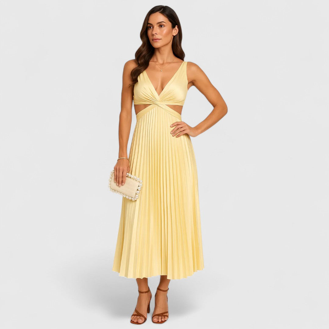 Ίριδα - Φόρεμα μίντι πλισέ με εκλεπτυσμένη φινέτσα και άνετη γραμμή