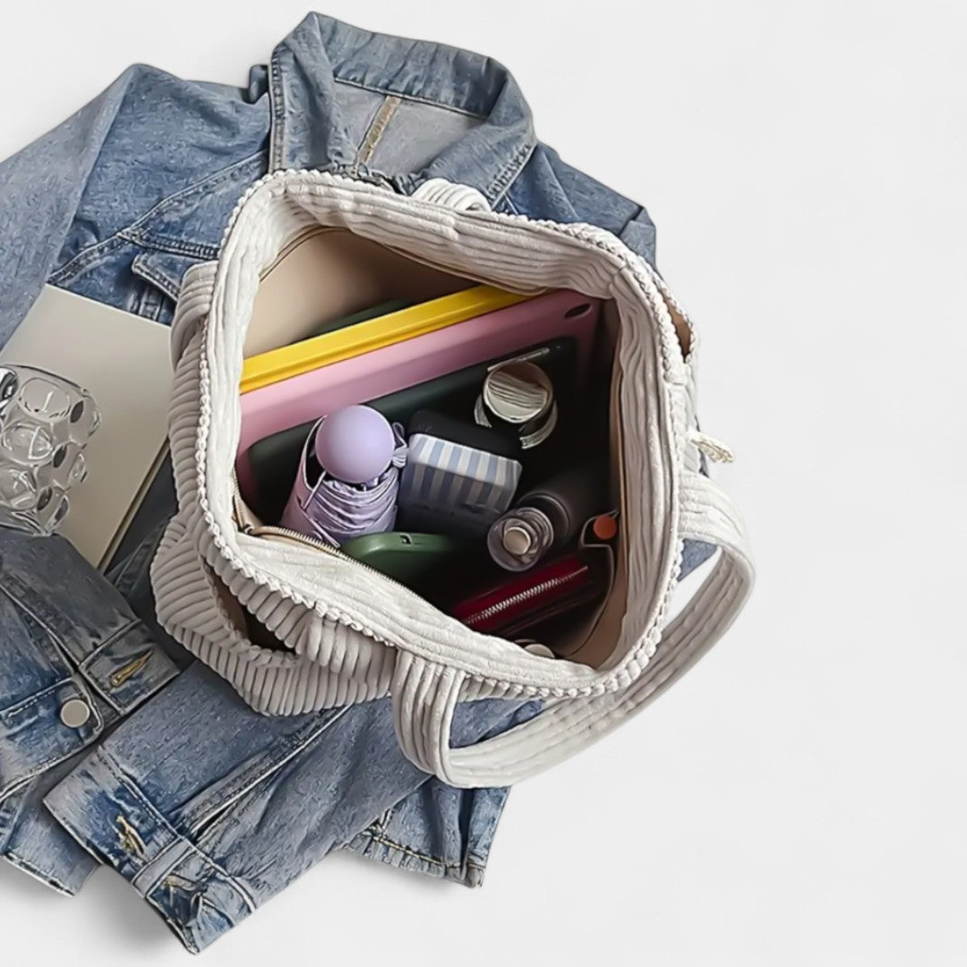 Δανάη - Τσάντα ώμου με ρίγες και κομψή λεπτομέρεια κορδονιού
