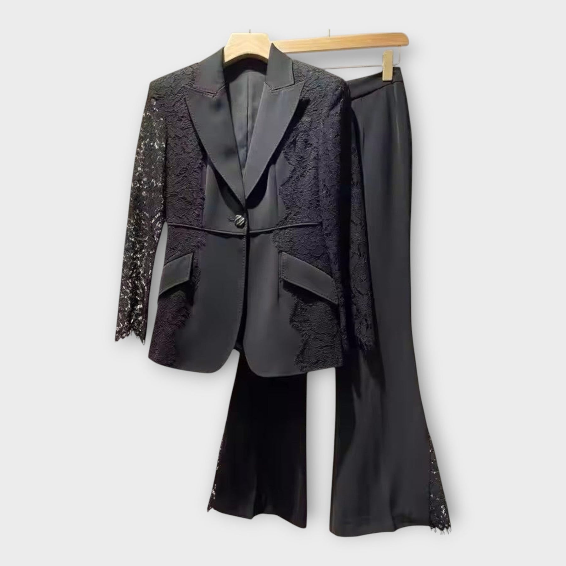 Κομψό σετ σακάκι και παντελόνι με δαντελένιες λεπτομέρειες