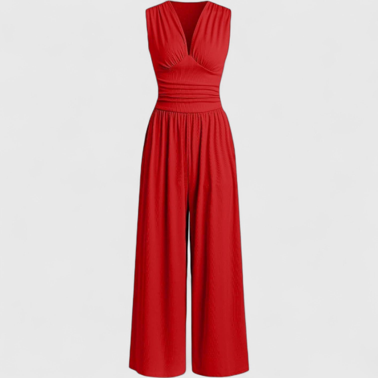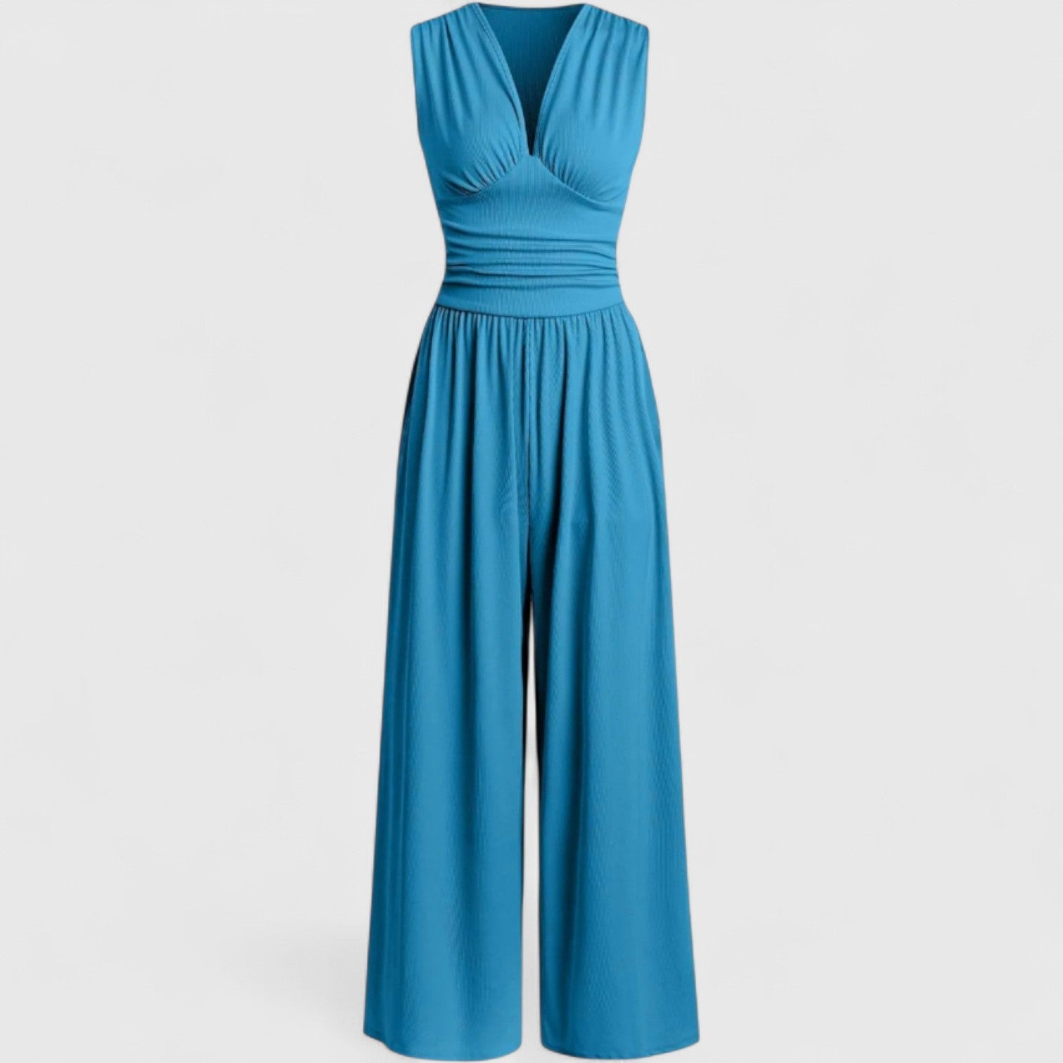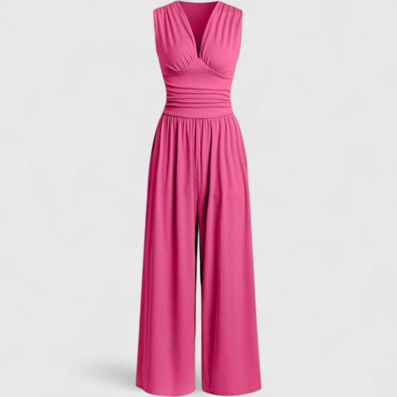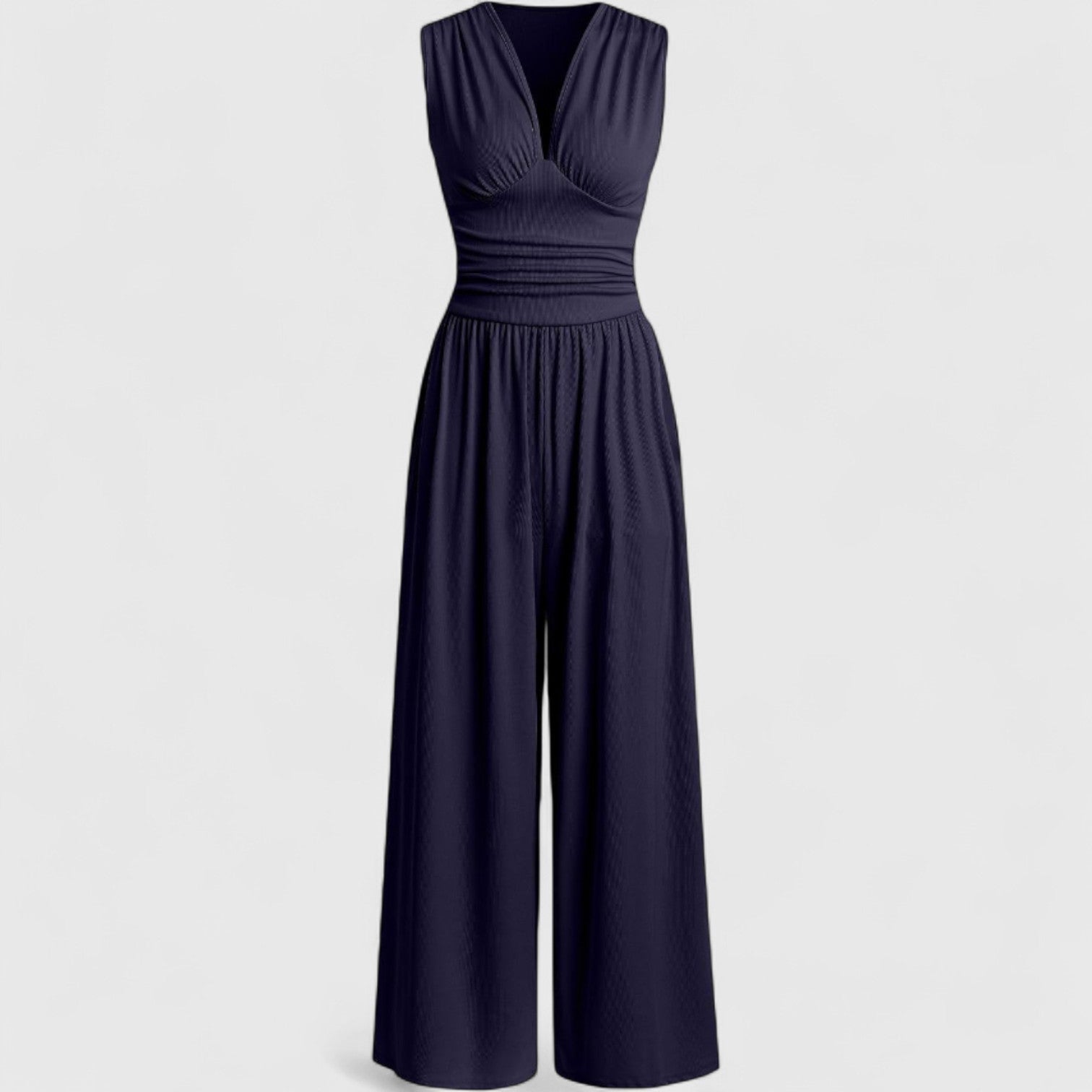 Αναστασία - Κομψή αμάνικη ολόσωμη φόρμα με φαρδύ παντελόνι