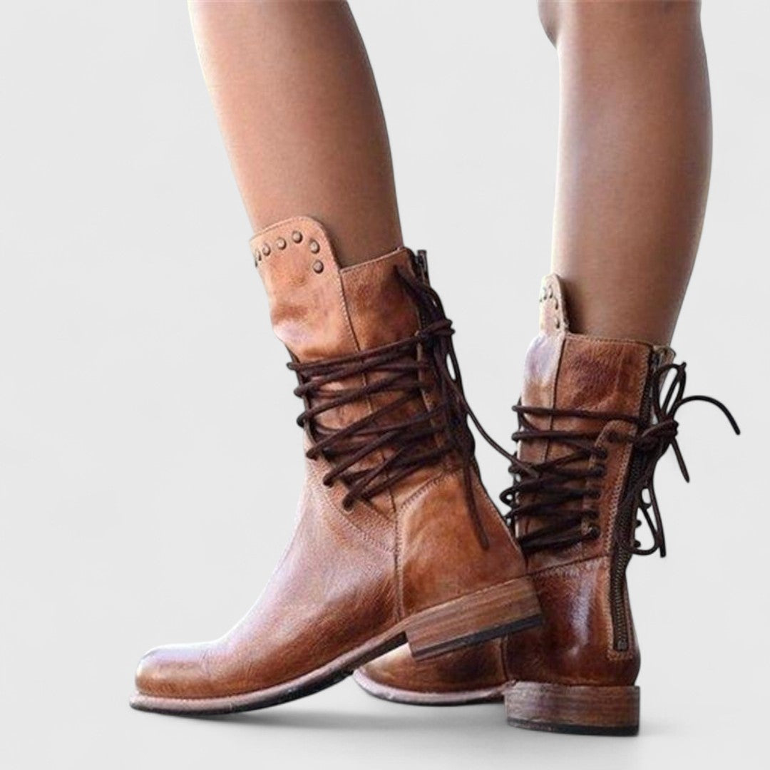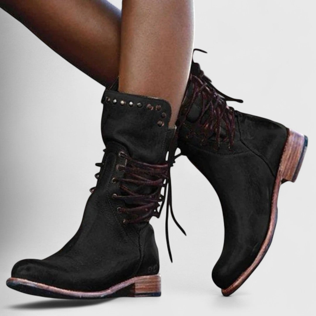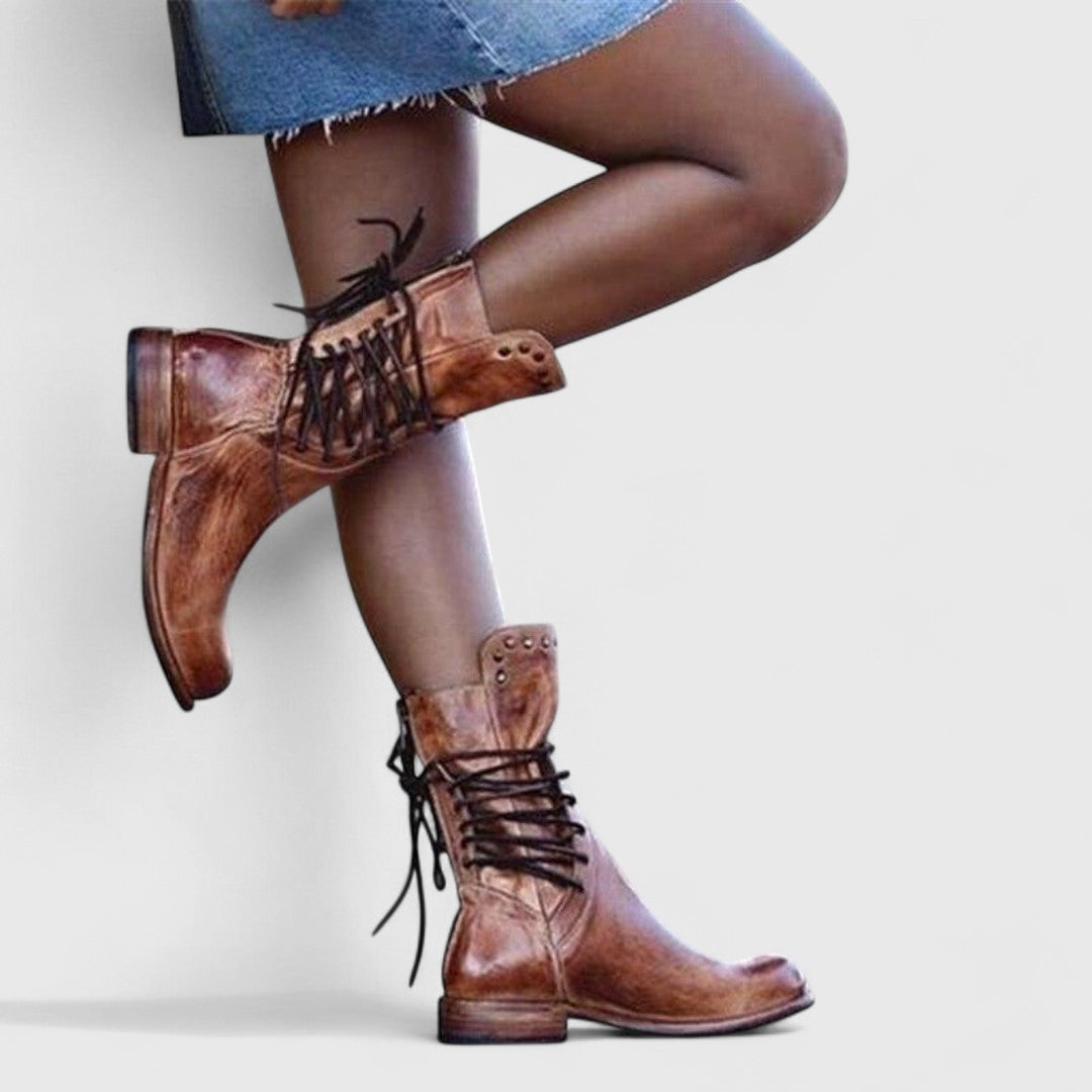Θεανώ - Δερμάτινα μποτάκια με κορδόνια για διαχρονικό ύφος